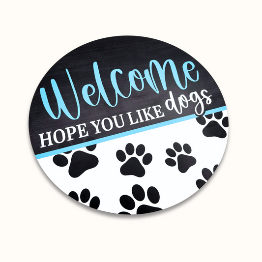 Welcome Door Sign – Hope You Like Dogs – Wooden Hanger for Dog Owners