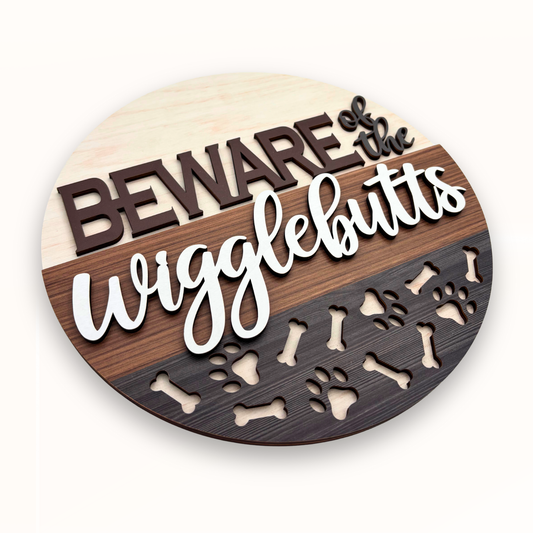 Beware of the Wigglebutts – 3-Layer Wooden Welcome Door Hanger