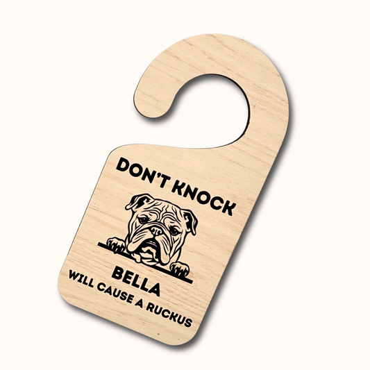 Don't Knock – Will Cause a Ruckus – Personalized Dog Face Door Hanger