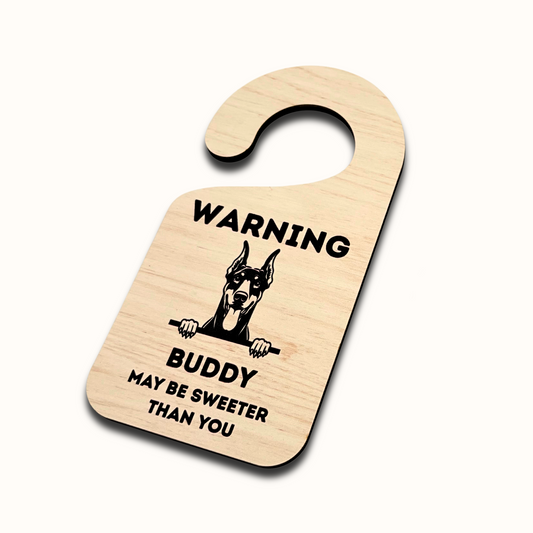 Warning – May Be Sweeter Than You – Personalized Dog Face Door Hanger