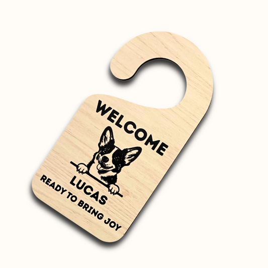 Welcome – Ready to Bring Joy – Personalized Dog Face Door Hanger