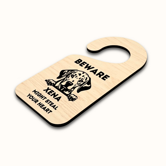 Beware – Might Steal Your Heart – Personalized Dog Face Door Hanger