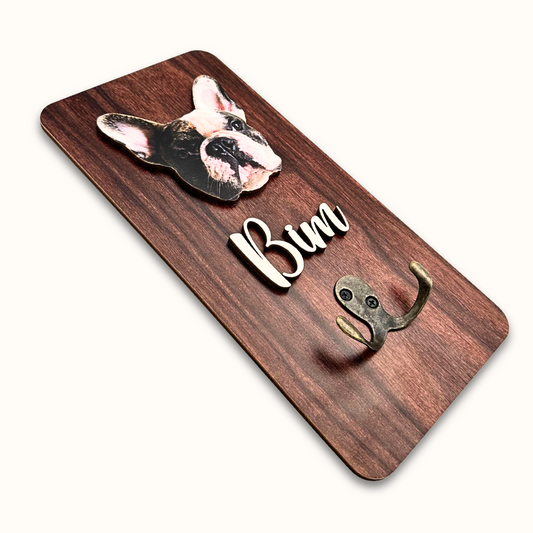 Personalized Pet Leash & Key Holder – Custom 2-Layer Wooden Pet Face