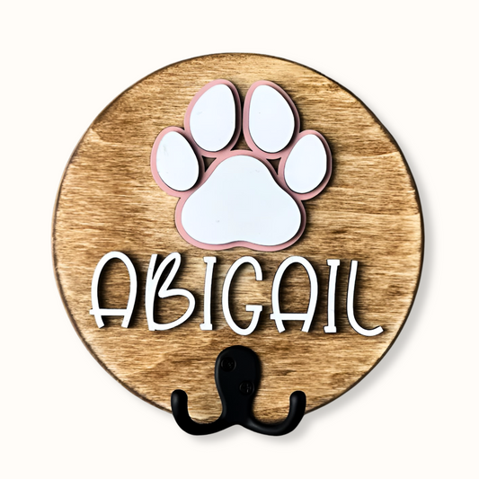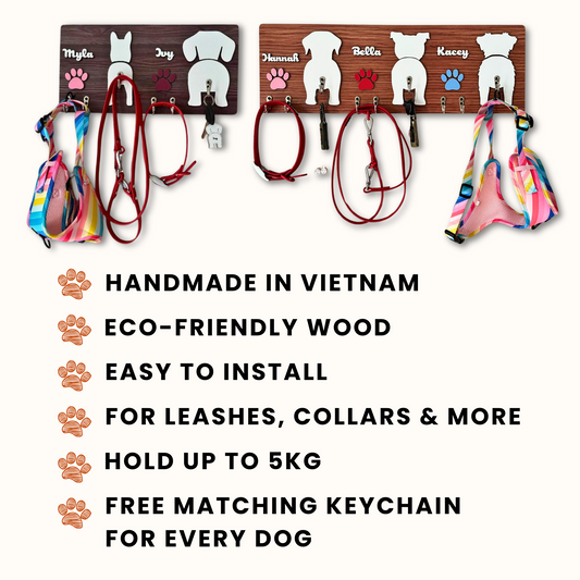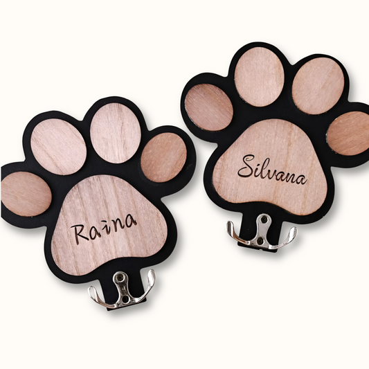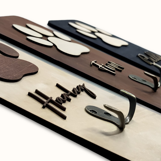 Personalized Leash & Key Holder – Custom 2-Layer Wooden Paw Shape Design