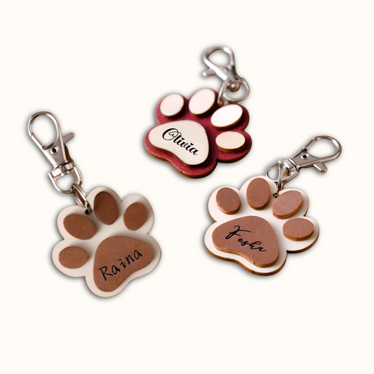 2 Layers Paw Shape Wooden Keychain, Custom Pet Name Keychain, Personalized Gift For Pet Lovers
