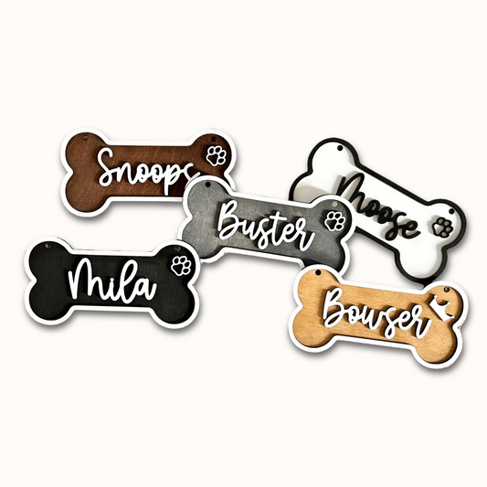Personalized Dog Name Plaque – Custom 2-Layer Bone Shape Wooden Sign