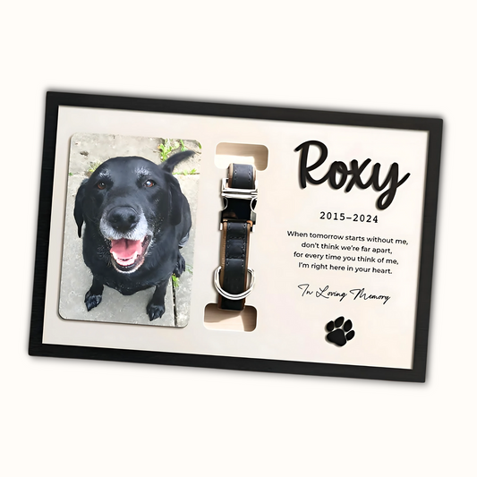 Personalized Wooden Pet Memorial Frame, Custom Pet Collar Holder Wooden Sign, Remembrance Gift For Loss Pet