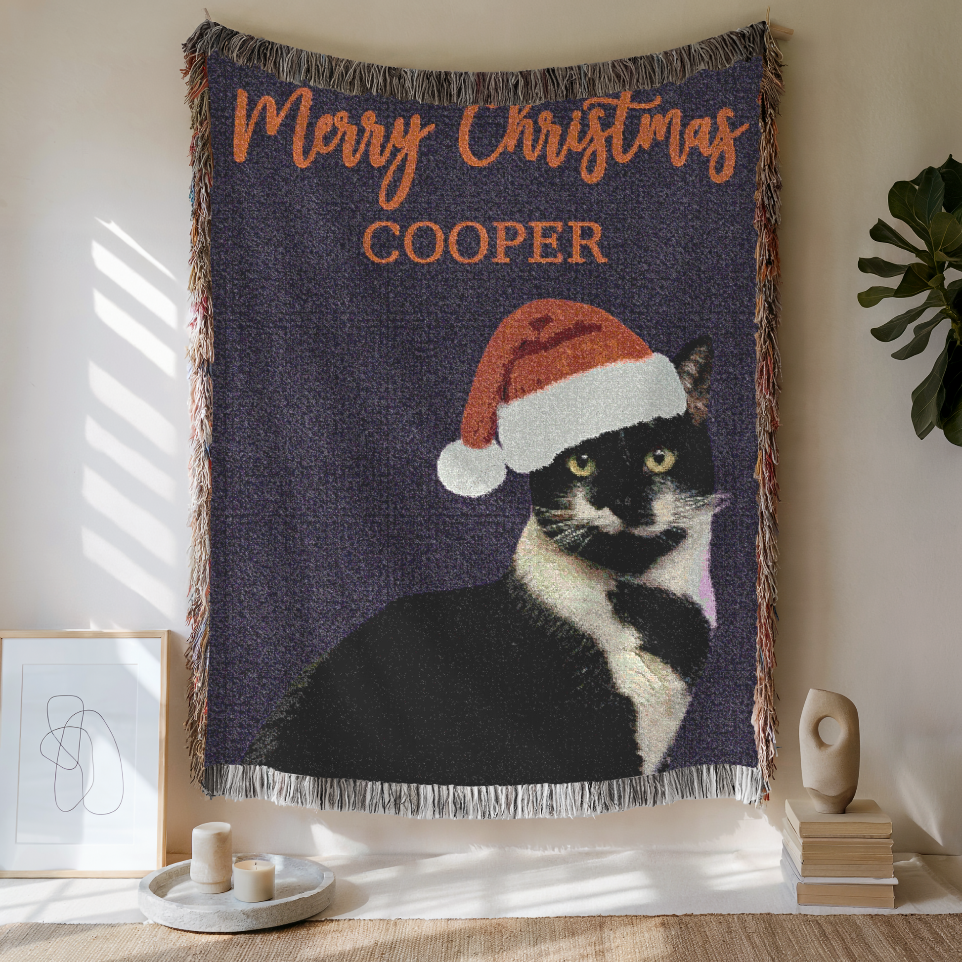So I made this Custom Pet Portrait Woven Blanket: Because nothing beats seeing your pet in a Santa hat; Because the couch feels cozier with their face on it; Because holiday mornings should start wrapped in the warmth of someone you love.